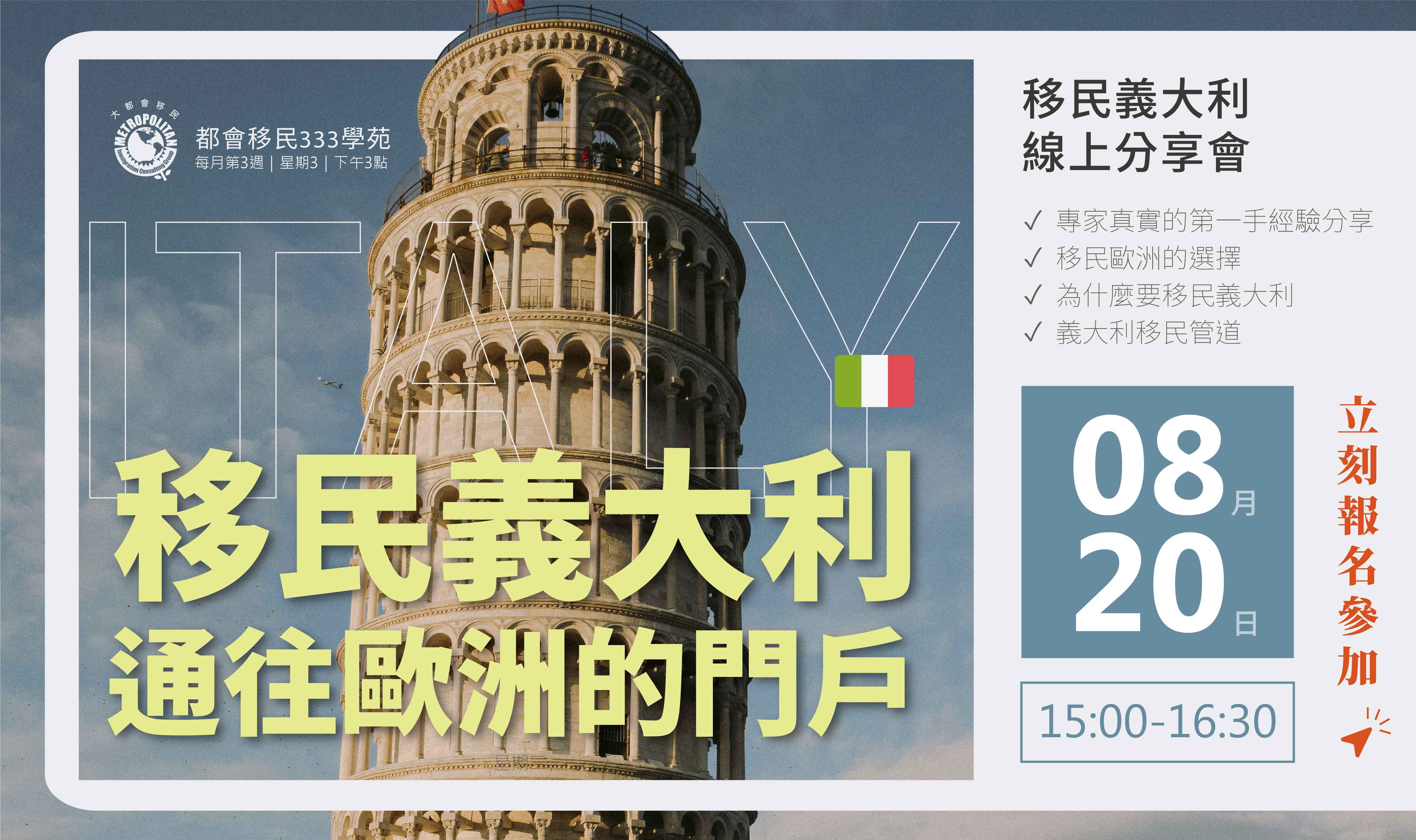 無論您正處於移民規劃初期、申請過程中,或是單純對義大利生活充滿好奇,這場分享會都將為您提供最完整、最實用的資訊。
