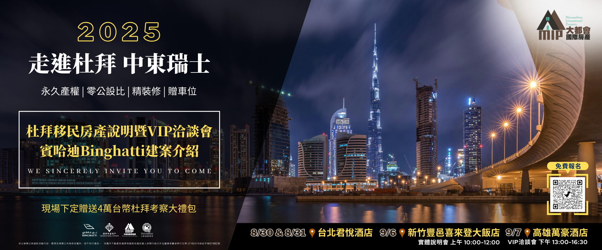 本次由大都會國際房產、大都會國際移民、杜拜華夏地產聯合杜拜知名開發商賓哈迪Binghatti為合作夥伴,共同在台北、新竹、高雄舉辦四場研討會,不僅帶來第一手的市場資訊與投資數據,更提供與開發商面對面深度洽談的機會,幫助有意佈局海外資產與身份規劃的您,「一次整合市場洞察與行動方案,助您立即展開全球資產布局。」