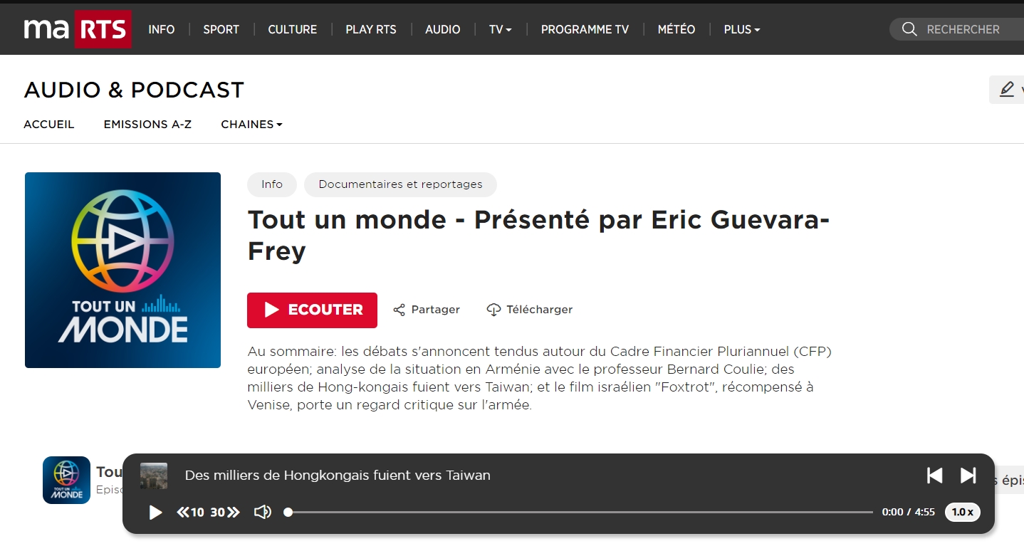 瑞士法語廣播電台RTS採訪 大都會顧問Phyllis 分析港人移民台灣的申辦現況