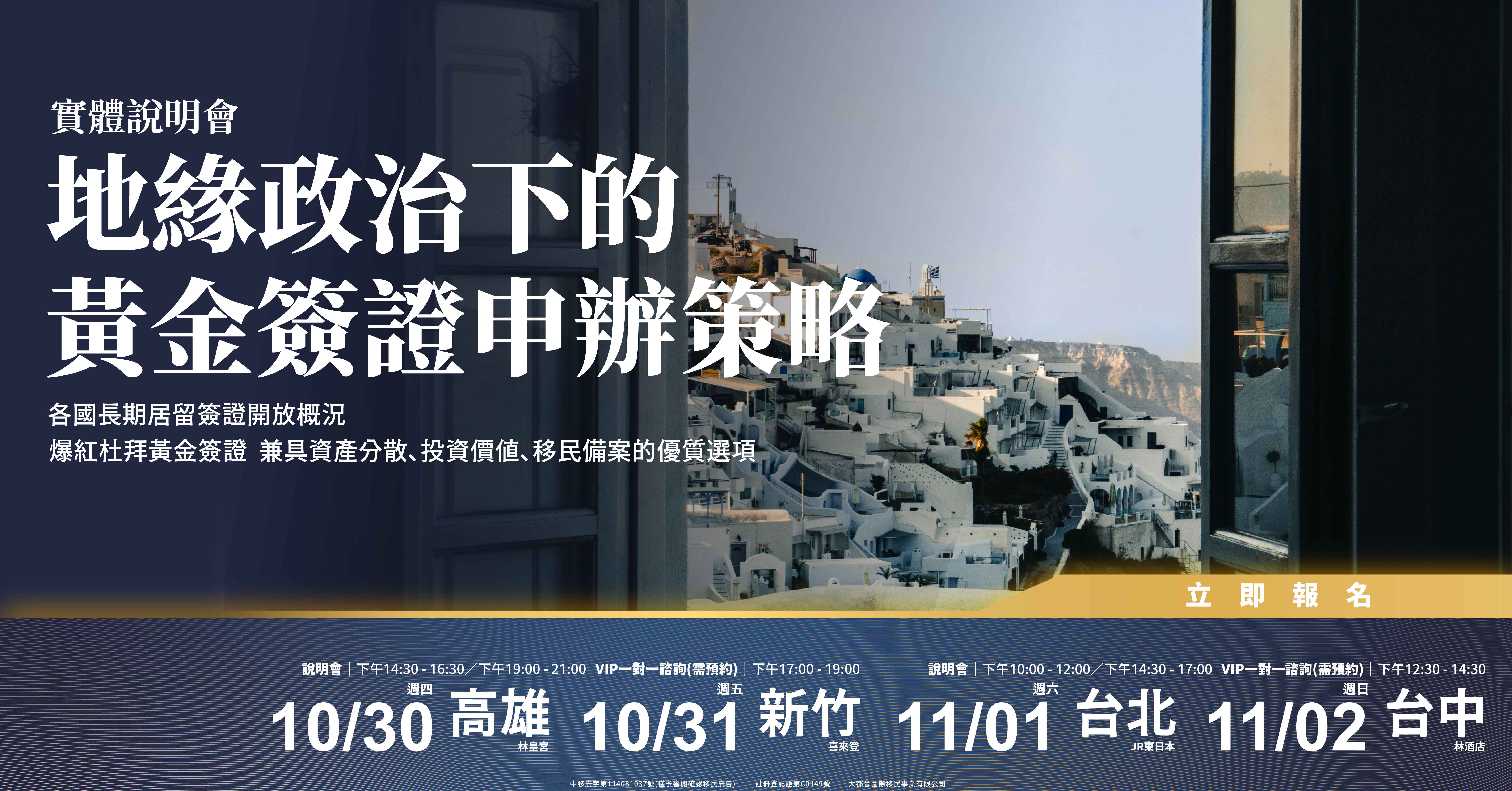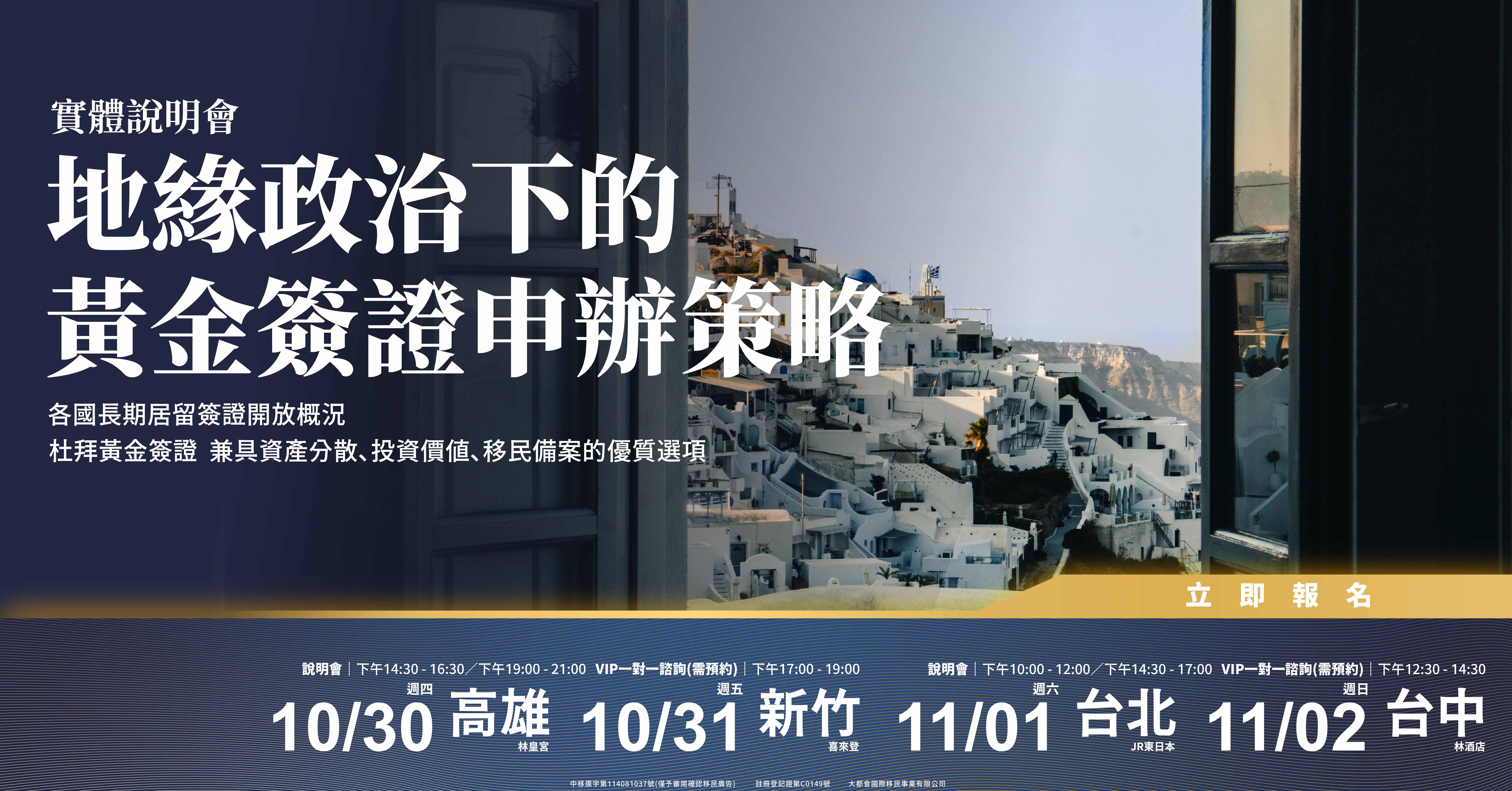 2023 年 8 月修法,新政規範涉及雅典北部、中部、南部及塞薩洛尼基、米科諾斯島、 聖托里尼島,須滿足最低房地產投資門檻 50 萬歐元 。