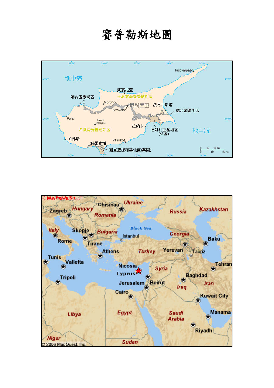 國情簡介:賽普勒斯,希臘語意為“產銅之島”,是女神維納斯的故鄉,是歐洲與亞洲交界處的一個島國,目前已知人類最早的活動足跡,可追溯至西元前10,000 年。1878 年,被英國佔領, 1960 年8 月16 日,宣佈獨立組成兩族聯合政府。1983 年,土耳其族宣佈成立北賽普勒斯土耳其共和國。